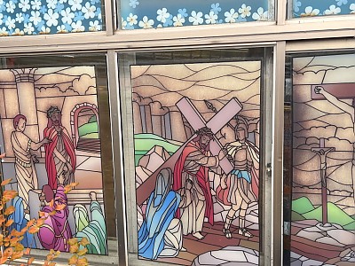 유리창에 성화시트지가 시간이 지나고 햇빛에 타서 변색이 되었어요. 성도님들이 시간을 내서 예쁘게 새단장을 했습니다…